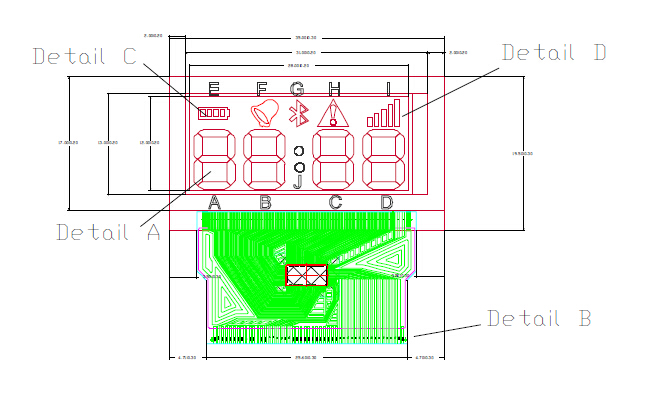 这是一个分段的电子纸显示模块,它能够在预置程序下显示分段内容。